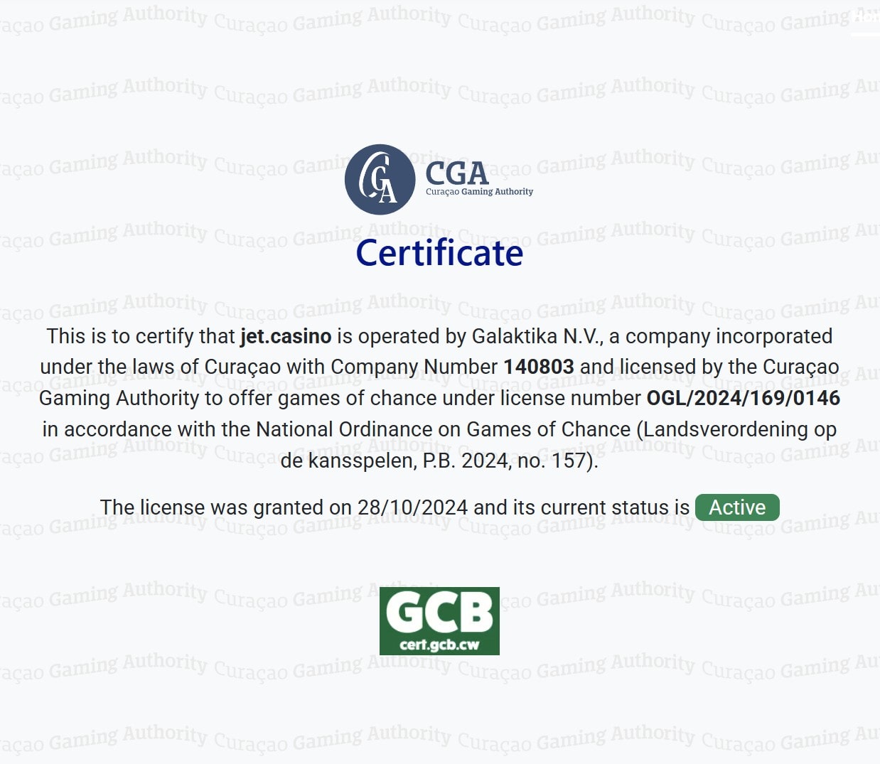 Antillephone License № 8048/JAZ2016-050 - Jet